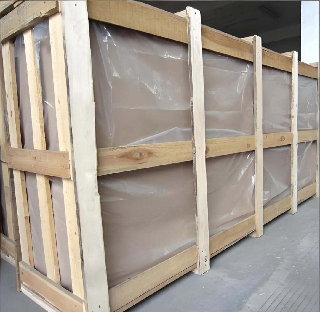 美设针对配件中易损部件,采用框架包装方案,通过木质底座固定与防静电填充材料。